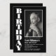 Convide seus amigos e entes queridos com este moderno preto com um convite de aniversário personalizado de fotos de texto branco. O texto pode ser personalizado para qualquer idade. (Enquanto a imagem de exemplo é exibida em preto e branco, a imagem carregada será em cor de cheio. Nenhum filtro foi usado para alterar sua imagem.)