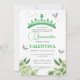Convite moderna Sage Green Floral Butterflies Quinceañera