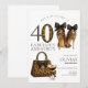Celebre os 40 anos com este convite de aniversário moderno e da moda, apresentando saltos com impressão de leopardo e guepardo, uma bolsa combinando e um copo de coquetel de expresso. Perfeito para uma festa de aniversário glamorosa, uma comemoração de trinta e poucos anos ou uma celebração de marco estiloso.