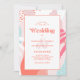 Convite Moderno Abstrato Artístico Coral Rosa Azul Turques
