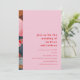 Defina o tom para uma celebração de casamento fabuloso com este esquema de cores vibrantes de rosa e vermelho. Este convite colorido tem uma aparência de designer com formas arredondadas de cor-de-terracota rosa claro sobre um fundo azul escuro. O modelo de texto em tipo de letra contemporâneo e nítido com um clima moderno e executa o tema lindamente. Arte original de Caroline Bonne Müller.
