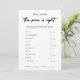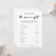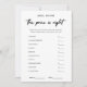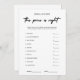 Comece a festa com o nosso moderno adivinhem o cartão de jogo do Chá de panela de preço certo! Este jogo cheio de diversão terá seus hóspedes adivinhando o preço certo para ganhar grande. Nesta reviravolta moderna no show clássico de jogos, os hóspedes tirarão o melhor partido possível ao adivinhar o valor do dólar mais próximo do total de todos os itens. Com seu design elegante e uma jogada de jogos engajada, este jogo de chá de panela é perfeito para adicionar um toque de entusiasmo a qualquer celebração. Nosso Cartão de Jogo do Chá de panela de Preço Certo não é apenas uma explosão a ser tocada, mas também serve como um guardião na moda para a futura noiva. Feito com atenção aos detalhes, esse cartão de jogo apresenta um design contemporâneo que complementa qualquer tema moderno do chá de panela. Com o nosso cartão de jogo em mãos, os convidados serão entretidos e desafiados enquanto tentam adivinhar os preços corretamente. É uma forma excelente de quebrar o gelo e envolver todos. Além disso, é uma oportunidade maravilhosa para a noiva e o noivo relembrarem sua própria jornada juntos. Torne seu chá de panela inesquecível com nosso moderno adivinho o cartão de jogo do Chá de panela de preço certo. Adicione entusiasmo, riso e competição amigável ao seu dia especial. Prepare-se para tocar e criar memórias que durarão uma vida inteira!