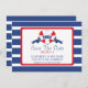 Anuncie sua data de casamento para a família e amigos, com nosso moderno e divertido anúncio de casamento. Nossa incrível e na moda salva a data de lançamento apresenta uma linda boia de coração vermelha e branca com uma faixa azul de marinho definida em um plano de fundo comum de faixa azul e branca. Sacudir a data acima para localizar um plano de fundo de distribuição correspondente. O perfeito é salvar o anúncio de um casamento de praia, casamento no mar de verão ou casamento de destino.