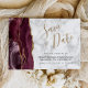 Convite Moderno Borgonha Dourada Agate Marble Salve a Data
