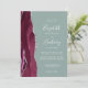A borda esquerda deste elegante convite de casamento moderno apresenta uma cor d'água borrifada com borda cortada com cintilação falsa de prata. O texto personalizável combina letras de mão, placas de impressão e fontes itálicas em branco sobre um fundo verde sábio. O lado inverso apresenta um design de burgundy e agate prateado.