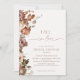 Chá de panela Floral Moderno Marrom Apaixonado Adorável convite de chá de pontes elegantes para outono com um arranjo floral majoritariamente marrom no lado do convite e um título de caligrafia moderno. Esta queda no chá de panela do amor tem um terraço de volta.