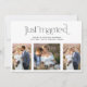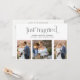 Casamento Secreto 4 Fotos Convite de Recepção - Anuncie seu casamento após sua fuga ou cerimônia privada e convide os convidados para sua recepção, com este cartão de convite de recepção moderno com 4 fotos para celebração após o casamento. Com três fotos verticais na frente e uma foto horizontal no verso, este design lhe dá muitas opções. "Casados" aparece no topo do cartão em uma tipografia cursiva minúscula preta fresca e casual, seguida abaixo por seus nomes, data e local, em uma fonte moderna e elegante sem serifa. Todos os campos de texto são completamente personalizáveis - cor, fonte, tamanho e texto podem ser alterados para atender às suas necessidades. O verso do cartão apresenta todas as informações do convite. Direitos autorais Anastasia Surridge, todos os direitos reservados.