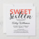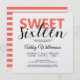 Um convite de aniversário de 16 anos com um visual moderno e elegante, com sweet sixteen em coral brilhante e preto. Você pode facilmente adicionar seus detalhes pessoais a este convite de aniversário de sweet sixteen. O verso do cartão apresenta um padrão de listras de coral e branco elegante. Se precisar de ajuda ou produtos correspondentes, entre em contato conosco através da nossa loja.