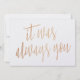 Estilo de caligrafia simples e bonito "Sempre foi você" cartão do dia do casamento da noiva para o noivo ou do noivo para a noiva.