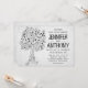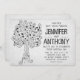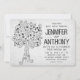 Convite preto e branco moderno simples do casamento da árvore de amor com coração cinzelado e suas iniciais.