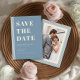 Moderno Clássico Salvar a Data Azul Listrado Foto Convite
