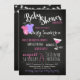 É um Chá de fraldas de Garota que Convites de festas em 'chalkboard', rosa e roxo são divertidos e modernos. Claro que para mostrar aos seus convidados que vai ter excelente tempo!! Estes são perfeitos para celebrar seu dia especial de uma maneira divertida e única! As costas têm um livro editável para texto para bebês.