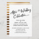 Nesta simples concepção, eu usei uma fonte de caligrafia elegante e moderna para criar uma sobreposição de tipografia gráfica que diz "Depois da Celebração de Casamento". Preencha os espaços em branco do modelo com os detalhes do seu evento de celebração para personalizar o design. Todas as camadas foram adicionadas separadamente e deixadas destrancadas para que você possa clicar para personalizar ainda mais e reposicionar o texto ou até mesmo alterar tamanhos ou fontes. A parte de trás do cartão é coberta com um padrão de listras douradas falsas sobre branco; o branco pode ser alterado para qualquer cor que você preferir. Alternativamente, sinta-se à vontade para substituir as listras por outro padrão ou imagem de sua escolha, ou até mesmo removê-lo completamente para um visual limpo e minimalista. //