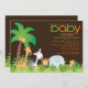 Comece seu chá de fraldas temático da selva do safari fora do direito com nossos convites bonitos & modernos super do chá de fraldas dos animais da selva. Nosso convite do chá de fraldas do safari caracteriza uma palmeira com um girafa, uma zebra, um leão, um elefante & um tigre ajustados em um fundo marrom com rotulação verde & alaranjada. A parte traseira dos convites coordena com a parte dianteira e caracteriza um hipopótamo doce. Convite perfeito dos animais da selva para um chá de fraldas das meninas do safari, "o chá de fraldas neutro" ou o chá de fraldas dos meninos da selva. Verifique para fora nossa loja em www.celebrateitinvtes.com para ver se há uma grande seleção de convites do chá de fraldas do safari & do chá de fraldas da selva.