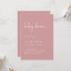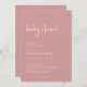 Esses elegantes e poeirentos convites para chuveiros de bebês cor-de-rosa são simples e minimalistas, mas muito na moda devido ao moderno roteiro manuscrito branco e ao layout limpo.