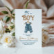 Celebrar a chegada de um cowboy com este Convite à Chá de fraldas Azul Jean! Este charmoso design apresenta um fato de bebê denim com cor d'água pendurado num cabide, perfeito para um chá de fraldas rústico ou de temática ocidental. A estética azul-jã clássica acrescenta uma tendência e um toque neutro em relação ao gênero, fazer-a ideal para celebrar um menino. Personalize os detalhes sem esforço para criar o convite perfeito para seu evento especial. ✨ recursos: tema de chá de fraldas russo e neutro em relação ao design, com denim de aquarela, totalmente personalizável, para chás de fraldas de denim e diamantes, chás de fraldas de cowboy ocidentais ou celebrações de bebês rústicos!