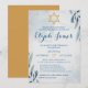 Convite Moderno Elegante Estrela de Davi Azul Ouro Bar Mit