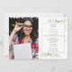 Com folhas verdes e moldura dourada elegante, este convite de festa de graduação chique pode ser personalizado com suas fotos de graduação e detalhes da celebração. Criado por Thisisnotme©