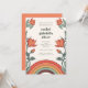 Este convite de Bat Mitzvah apresenta um design floral moderno boho com um arco-íris suave em tons de coral e salvia. A ilustração de inspiração folclórica cria uma sensação calorosa e artística que combina perfeitamente com celebrações contemporâneas. Um layout limpo destaca seu nome, enquanto a borda ousada adiciona personalidade e charme. Ideal para serviços de templo, almoços e reuniões festivas.