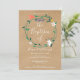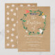 Com uma grinalda floral moderna de flores da primavera sobre um fundo kraft rústico, este convite de batismo ou batizado chic e neutro em termos de gênero pode ser personalizado com as informações do seu dia especial. Com um padrão de margaridas da primavera no verso. Concebido por Thisisnotme