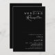 Este moderno minimalista | o convite à recepção de casamento negra é perfeito para o seu casamento clássico do Boho. Seu design simples, único e abstrato acompanhado de um roteiro mínimo contemporâneo e de uma paleta de cores preto e branco dá a este produto uma sensação de luxo formal elegante enquanto permanece simplista, a boêmia chica. Mantenha-o como está ou escolha personalizá-lo com trabalho de arte ou gráficos de sua escolha. Você também pode procurar outros produtos dentro desta coleção para juntar todo o seu casamento!