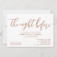 Elevem seu janto de ensaio de casamento com o nosso convite de Janto de ensaio de casamento "A Noite Antes". Apresentando uma elegante caligrafia castanha sobre fundo branco limpo, esse convite incorpora simplicidade e sofisticação modernas. Ideal para casais que apreciam uma estética minimalista, essa design é perfeita para qualquer tema de casamento, da rústica à boho-chic. Quer você esteja planejando um evento inspirado em vintage ou uma celebração ousada e moderna, este convite dá o tom para uma noite inesquecível. Como parte do seu ensaio, jante decorações e suprimentos, este cartão complementa qualquer decoração, garantindo uma apresentação coesa e na moda. Faça uma impressão duradoura com este eterno e um convite elegante.
