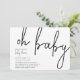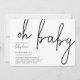 Incorpore um conjunto de convidados com este querido delicioso e especialmente um convite para chás de fraldas atraente. Este convite moderno, mas mínimo, apresenta "Oh Baby" em grande escrita preta com os detalhes do chá de fraldas por baixo.