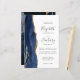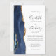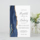 A borda esquerda deste elegante convite de casamento moderno apresenta um marinho azul de aquarela agata borda aparada com falso brilho dourado. O texto personalizável combina manuscrito, copperplate e fontes itálicas em cinzas de carvão em um fundo branco. O verso apresenta um design azul-marinho e um agate-ouro correspondentes.
