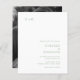 Convite para casamento de orçamento moderno com um layout simples e minimalista com seu monograma no canto superior esquerdo e seus detalhes de casamento no canto inferior direito. O fundo tem sua foto favorita. Todos os elementos de design estão em verde de sábio sobre um fundo branco e podem ser alterados na ferramenta de edição de design. Este convite de casamento chic com um design mínimo, mas elegante, vai bem com qualquer estilo de casamento contemporâneo.