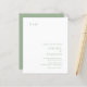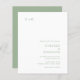 Convite para casamento de orçamento moderno com um layout simples e minimalista com seu monograma no canto superior esquerdo e seus detalhes de casamento no canto inferior direito. Todos os elementos de design estão em verde de sábio sobre um fundo branco e podem ser alterados na ferramenta de edição de design. Este convite de casamento chic com um design mínimo, mas elegante, vai bem com qualquer estilo de casamento contemporâneo.