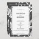 Faça uma declaração ousada com este Convite Moderno para Casamento Preto e Branco, com filmes ilustrados impressionantes e um layout limpo e estruturado. Perfeito para casais que querem um design artístico contemporâneo com talento minimalista. Os pop centrados na tipografia contra um fundo botânico monocromático, enquanto os ícones da na moda adicionam clareza visual moderna aos detalhes do seu casamento. Ideal para casamentos modernos, casais de avanço ou eventos de gravata negra com uma borda.