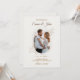 Um belo convite de casamento com um bege suave ou fundo cremoso com uma elegante foto central do casal. A design é completada com uma mensagem de parabéns sincera, criando um convite caloroso e eterno perfeito para celebrar o amor e a união. Ideal para casais que apreciam simplicidade, elegância e um toque pessoal.