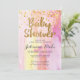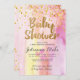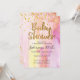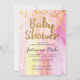 Então, Trendy, este convite apresenta um fundo de aquarela cor rosa e letras falsas em ouro e confetti caindo no fundo.