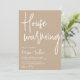 Deixe seus convidados saberem o quanto você está animado com seu novo lar com este elegante e moderno convite para o lar. Esta design polida apresenta uma paleta neutra do que uma paleta, criando um aspecto de eterno que é perfeito para qualquer ocasião. Convide sua família e amigos para se juntarem a você e fazer uma casa especial para se lembrar.