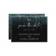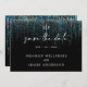 Save the Date abstrato moderno - Uma guirlanda arrojada e brilhante em azul-turquesa cascata pela página, em caligrafia manuscrita está "salve a data" - as iniciais do casal no topo - o resto do texto é simples e limpo - tudo em um fundo preto. Papelaria de casamento elegante.