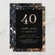 Moderno, Dourado-negro-brilho 40. Aniversário, convite prateado. Personalizado em minutos. Adicione seus dados, carregue sua foto. Você pode alterar o número 40 para poder usar o convite para 30, 40, 50, 60. Aniversário e mais.