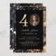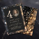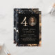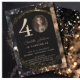 Moderno, Convite de glamour Preto-Dourado-Brillo para 40. Aniversário, prata. Personalizado em minutos. Adicione seus dados, envie sua foto. Você pode alterar e editar o número 4, para usar o convite para o seu aniversário de 30, 40, 50, 60 anos e mais.