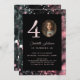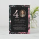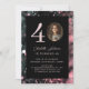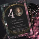 Moderno, cor-de-rosa-preto 40. Aniversário, convite prateado. Personalizado em minutos. Adicione seus dados, carregue sua foto. Você pode alterar o número 4 para poder usar o convite para 30, 40, 50, 60. Aniversário e mais.