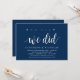 Cartão de convite temático Moderno Rústico, com escrita em Azul Naval (com título do cartão: oh sim, nós fizemos). É perfeito para o seu reception de casamento / festa de celebração pós-casamento. Adicione seus detalhes na fonte / letra preta correspondente.