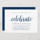 Cartão de convite temático Moderno Rústico, Azul Marinho Script (com título do cartão: agora é hora de celebrar). É perfeito para o seu casamento às escuras / festa de celebração pós-casamento. Adicione seus detalhes em fonte / letra preta correspondente.