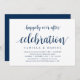 Moderno Rústico, convite temático Azul-Marinho Script (com título do cartão: Celebração Feliz para Sempre). É perfeito para o seu casamento íntimo / recepção de celebração pós-casamento. Adicione seus detalhes em fonte / letra preta correspondente.