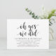 Cartão de convite temático Moderno Rústico, Letra Preta (com título do cartão: oh sim, nós fizemos). É perfeito para o seu casamento às escuras, recepção / festa de celebração pós-casamento. Adicione seus detalhes em fonte / letra preta correspondente. #TeeshaDerrick