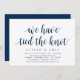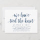 Cartão de convite temático Moderno Rústico Limpo, Azul Naval com fonte Script (com título do cartão: nós atamos o nó). É perfeito para o seu casamento furtivo, recepção / festa de celebração pós-casamento. Adicione seus detalhes na fonte / letra preta correspondente.