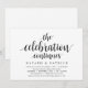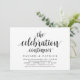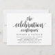 Convite temático de carta com fonte preta moderna e limpa (com título do cartão: a celebração continua). É perfeito para o seu casamento fuga recepção / festa de celebração pós-casamento. Adicione seus detalhes na fonte / letra preta correspondente.