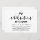 Convite temático de carta de script de fonte preta (com título do cartão: a celebração continua). É perfeito para o seu casamento íntimo / festa de celebração pós-casamento. Adicione seus detalhes na fonte / letra preta correspondente.