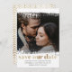 Faça uma declaração e crie a antecipação para o dia do seu casamento com o nosso sofisticado cartão "Salve a Data" com uma fotografia personalizada e uma falsa caligrafia dourada. Deixe que a combinação de sua querida foto com o roteiro de shimmering crie uma apresentação visual impressionante que captura a essência de sua história de amor.