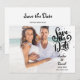 Este cartão de salvar data com foto em script moderno apresenta sua foto e uma data de salvar em script acima dos seus nomes, data e local. O verso tem detalhes adicionais para salvar a data, incluindo o site do seu casamento. Projetado por Thisisnotme©