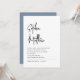 Convites de casamento brancos minimalistas e elegantes apresentam tipografia moderna de letra cursiva e letras sans serif limpas para um visual simples e sofisticado com azul poeirento no verso do convite que você e seus convidados vão amar.