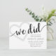 Simples convite de recepção "nós fizemos" com um roteiro divertido e casual, com um coração. O clássico design inclui uma moderna camada de tipografia de citações feitas à mão. Para outras cores ou produtos correspondentes, visite a loja justFharryn Zazzle ou entre em contato com o designer, c/o Fharryn@yahoo.com Todos os direitos reservados. #bohochic #zazzlemade