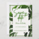 Convite de Salvar a Data Tropical Neon Moderno em Cores Tema Verde e Branco – a maneira perfeita de definir o tom para a sua celebração que se aproxima para um casamento de destino com um toque de charme exótico e elegância contemporânea.